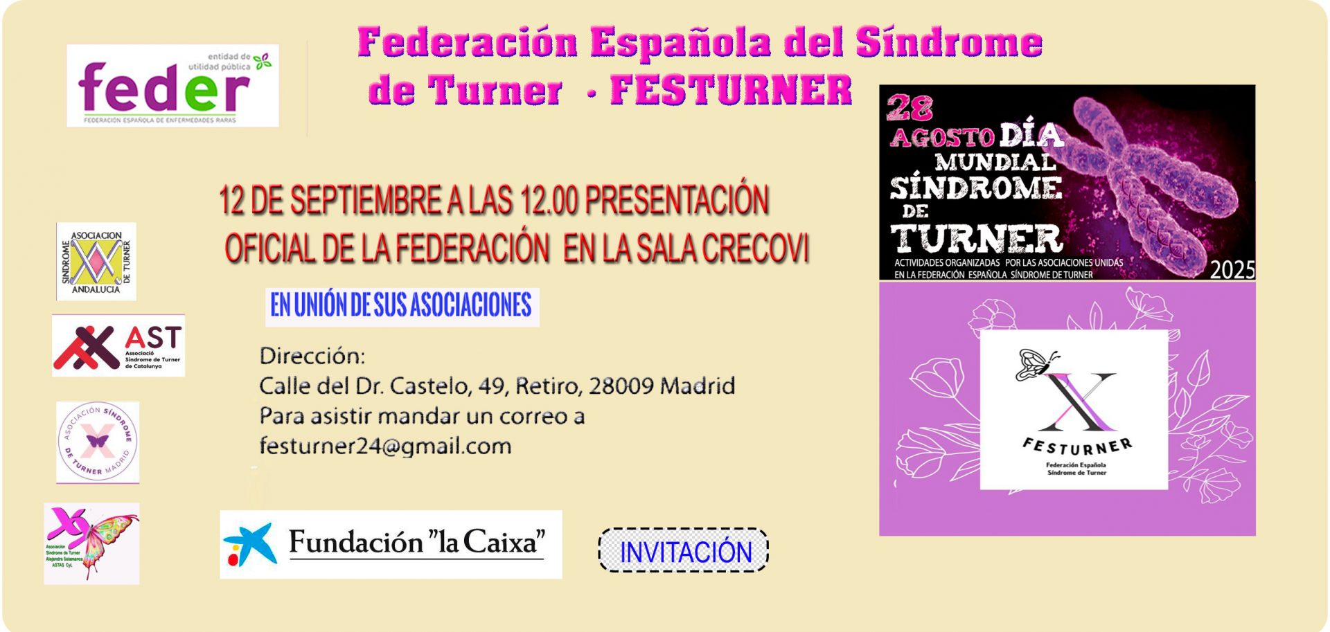 En 2025 nació FESTURNER, una federación que surge del encuentro, del esfuerzo compartido y de la necesidad de caminar junt@s. Nacimos para dar voz, para sumar miradas, para acompañar y para construir un futuro más justo y visible para las niñas, mujeres y familias con síndrome de Turner.